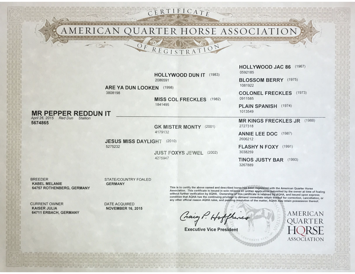 Pedigree von Mr Pepper Red Dunit