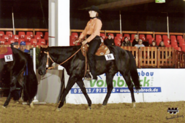 Hallo Julia und George, wollte Euch mal kurz informieren wie es dem Choci geht. Also hatte dieses Jahr eine tolle Saison mit ihm, waren das erste Mal in Kreuth und wurden 3.in der Amateur Pleasure. Ansonsten wurde ich noch Ba-Wü Landesmeister im Junior Trail und vor einer Woche Deutscher Meister im Junior Trail und Deutscher Mannschaftsmeister (meine Disziplin war Horesmanship). Von den vielen 1. Plätzen auf A/Q Tunieren in der Pleasure,viele Plazierungen im Trail und WHS will ich gar nicht reden. Mit Choci habe ich mein Traumpferd bei Euch gefunden. Vielen Dank.